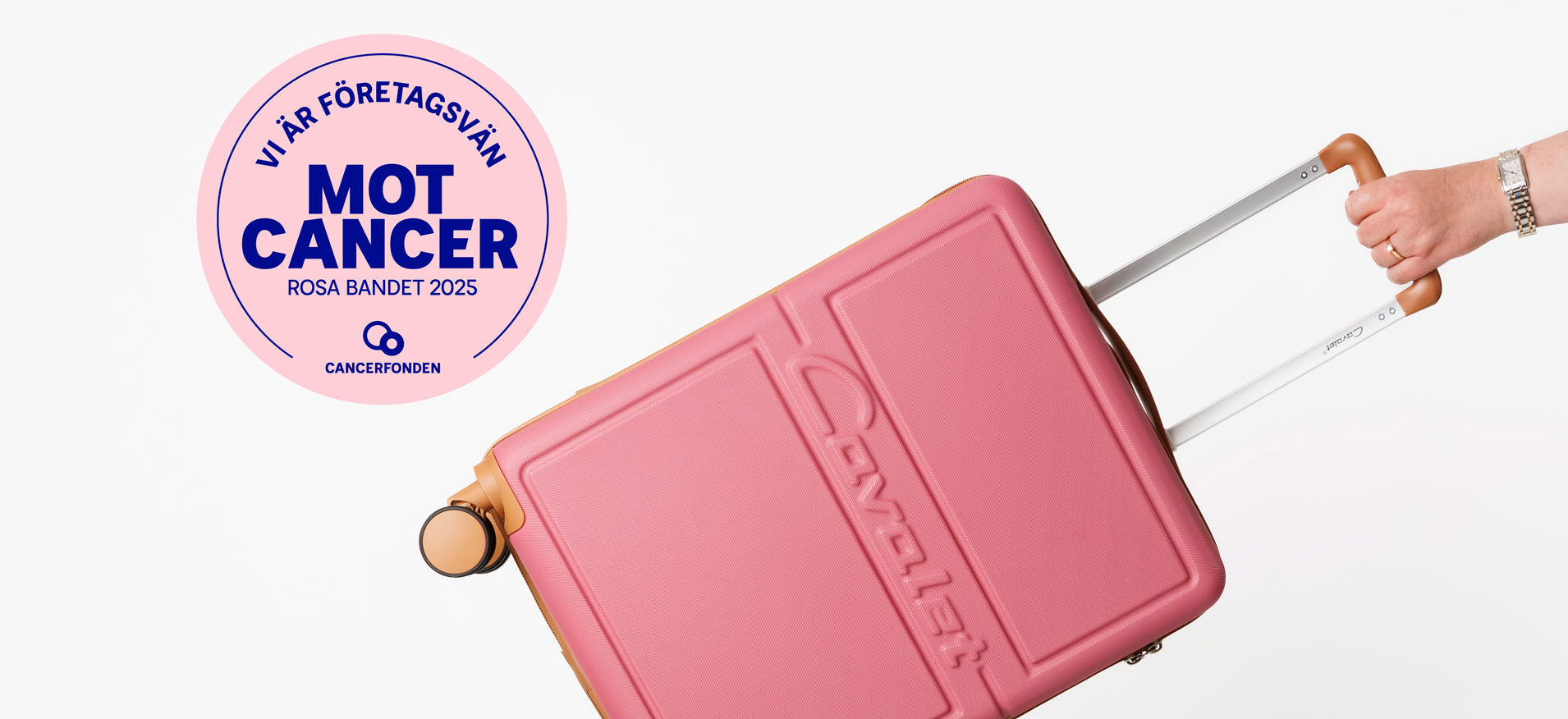 Cavalet är stolta företagsvänner till Rosa Bandet. Oavsett om du ska på weekend, affärsresa eller drömresan långt bor så gör det med en färg som sprider glädje och uppmärksamhet till en viktig sak.