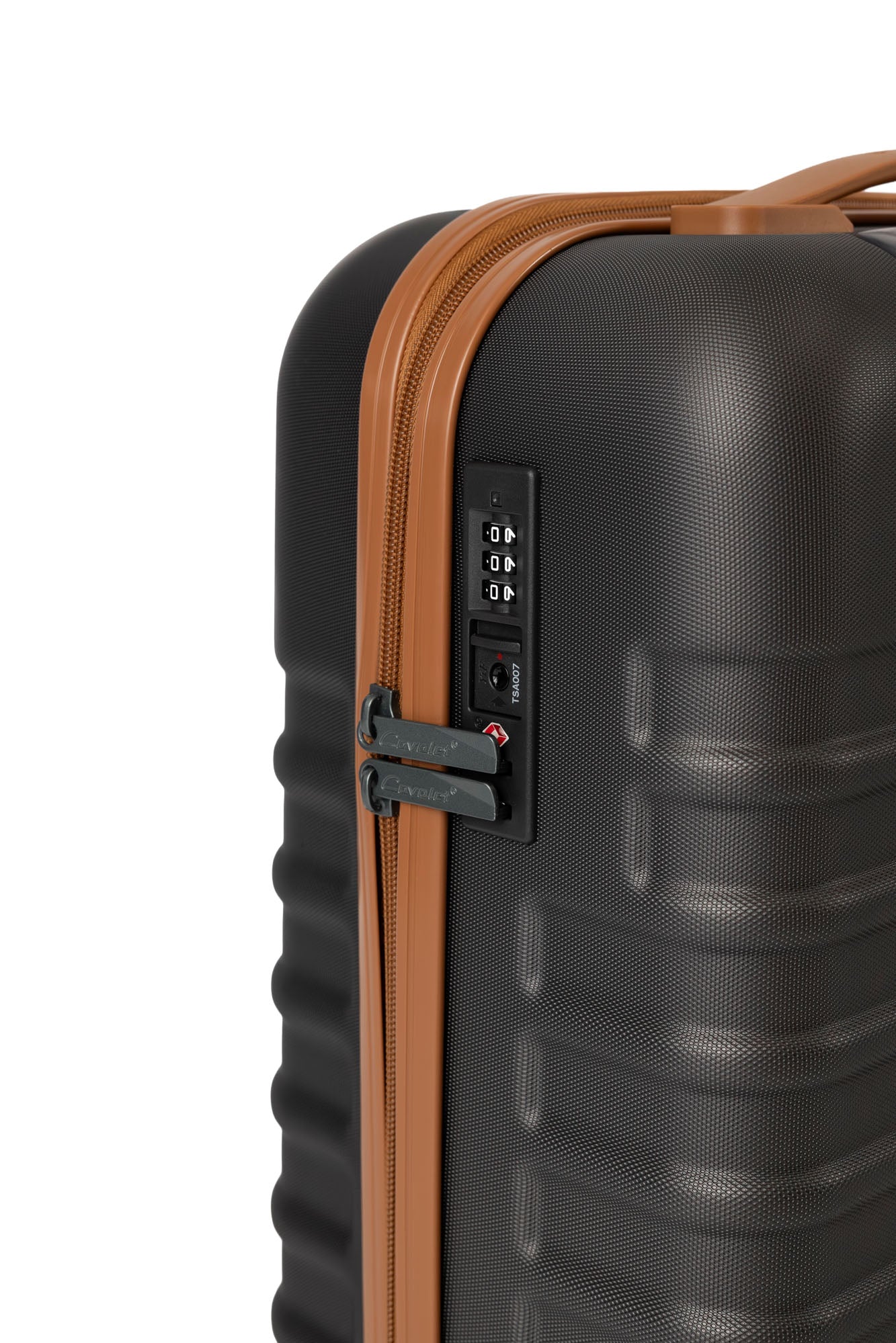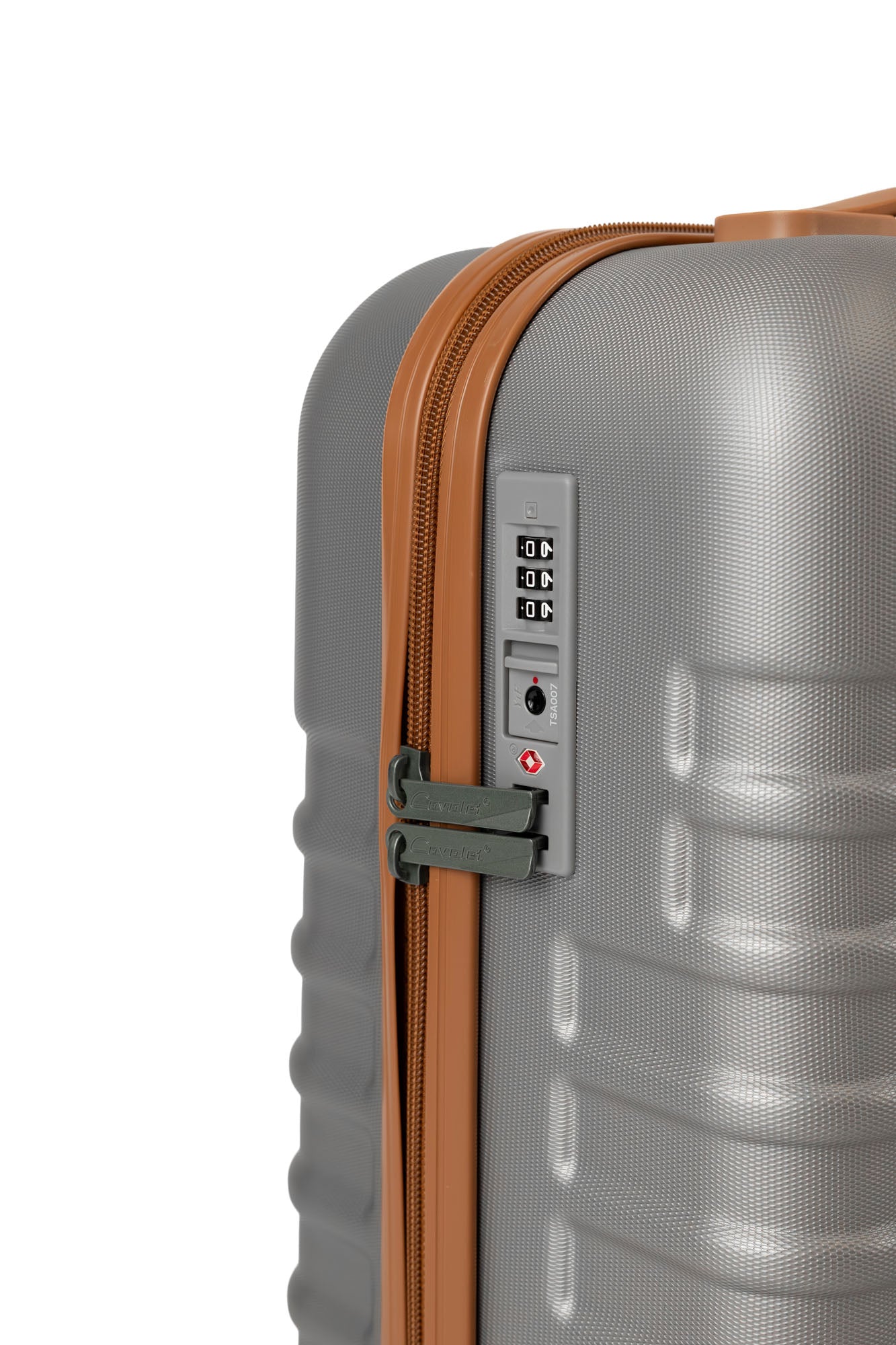 | Lås | Fast, infällt TSA-lås, tresiffrig kombination |