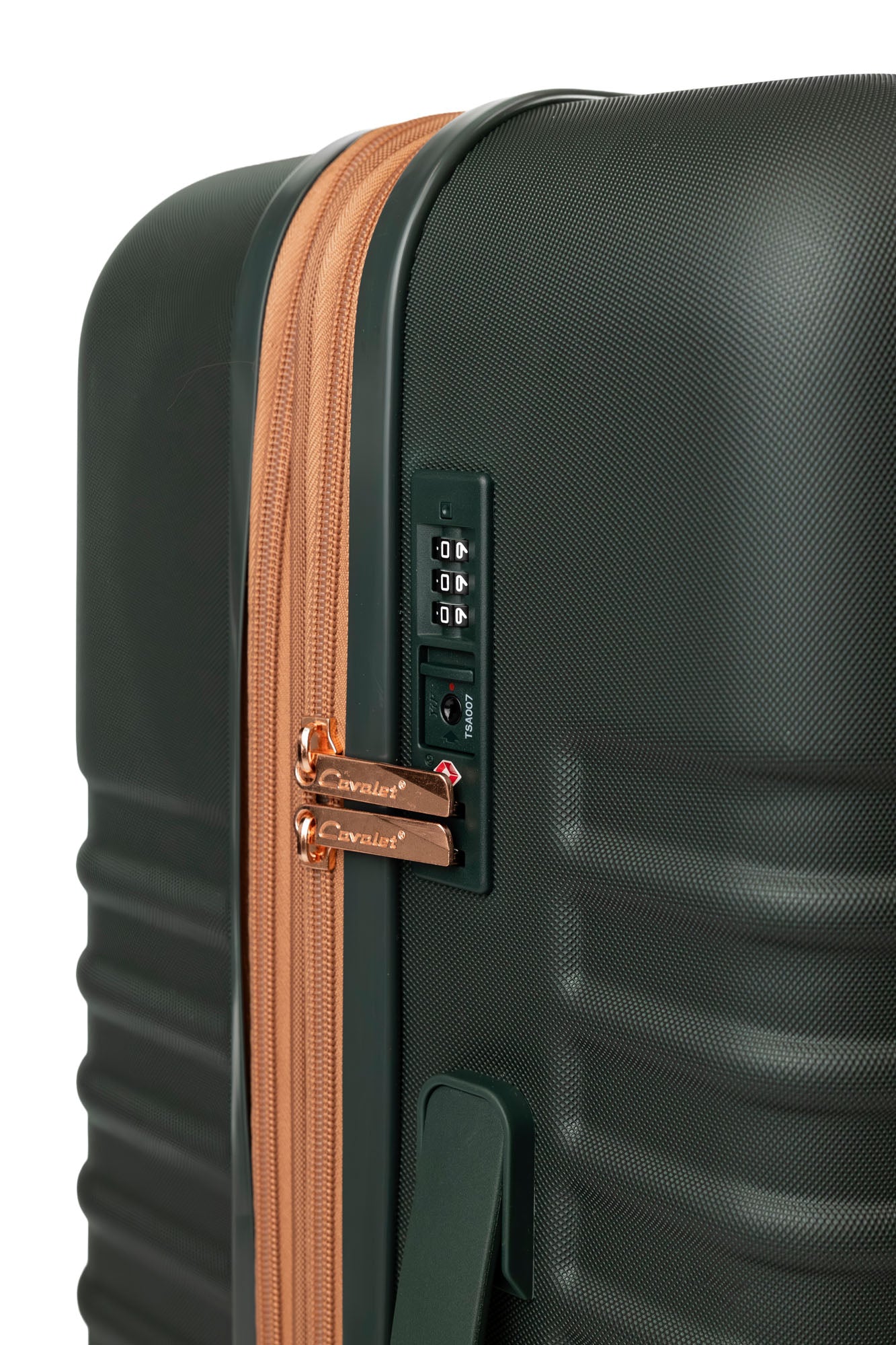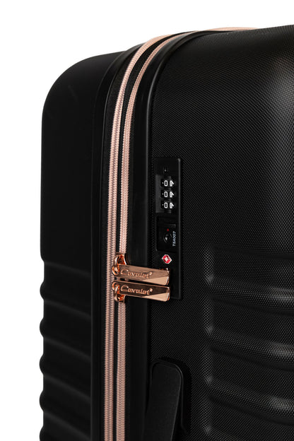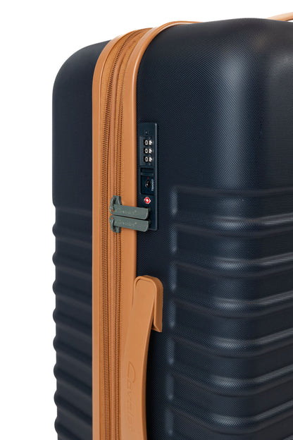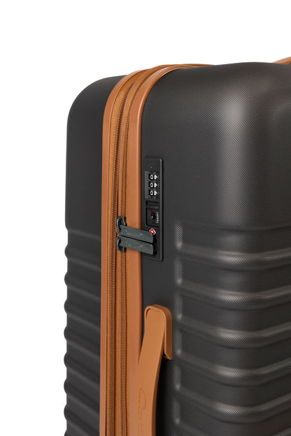 | Lås | Fast, infällt TSA-lås, tresiffrig kombination |