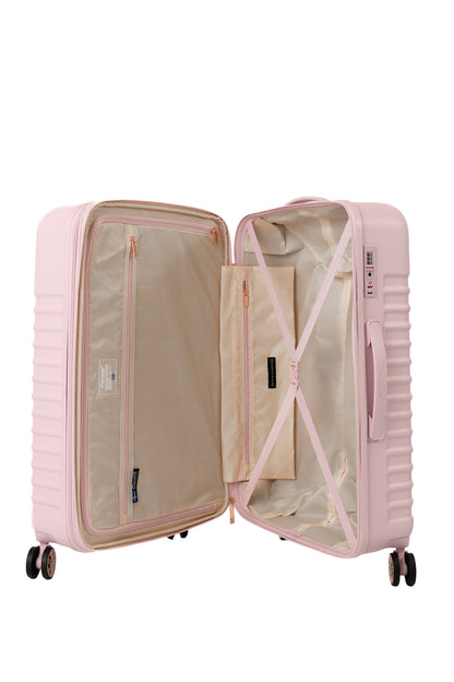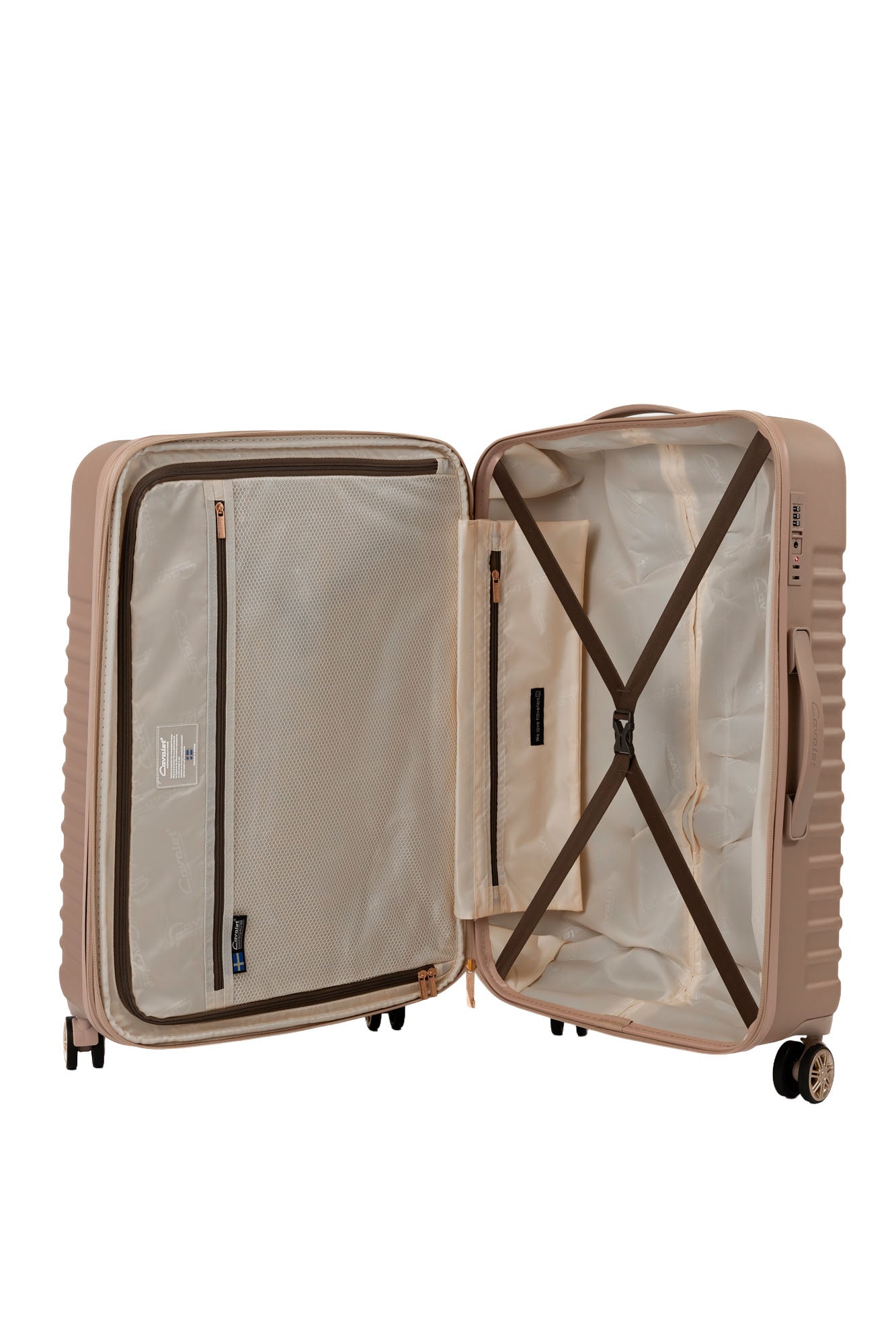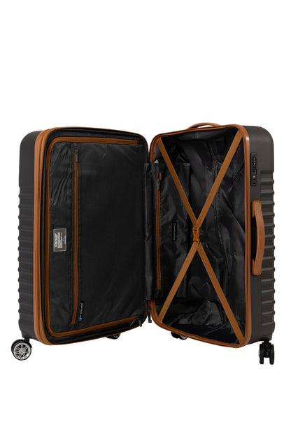 En inredning som följer väskans yttre färgkombinationer. Detaljer som nätficka och fack för småprylar. Avdelare och packband där du placerar dina kläder som ligger säkert på plats. Helt integrerat teleskophandtag. Fast TSA-lås som är inbyggt.
